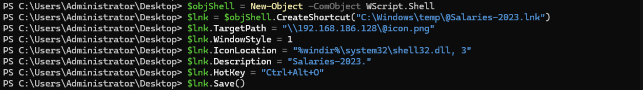 $lnk = $objShell.CreateShortcut("C:\Windows\temp\@Salaries-2023.lnk")
