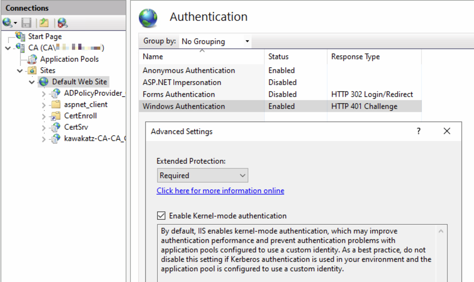 On the other hand, even using Kerberos authentication over HTTP, we cannot relay it to LDAP/LDAPS regardless of service settings. According to the article by Synacktiv,