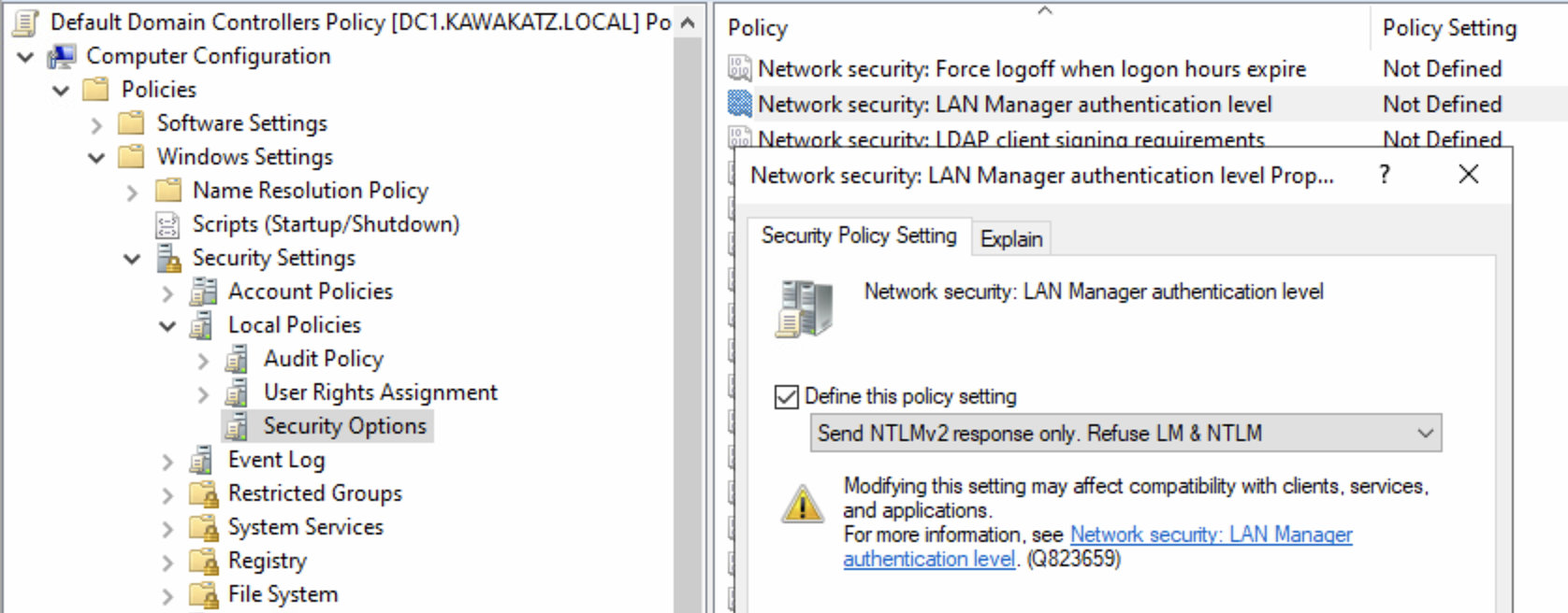 Value: Send NTLMv2 response only. Refuse LM & NTLM